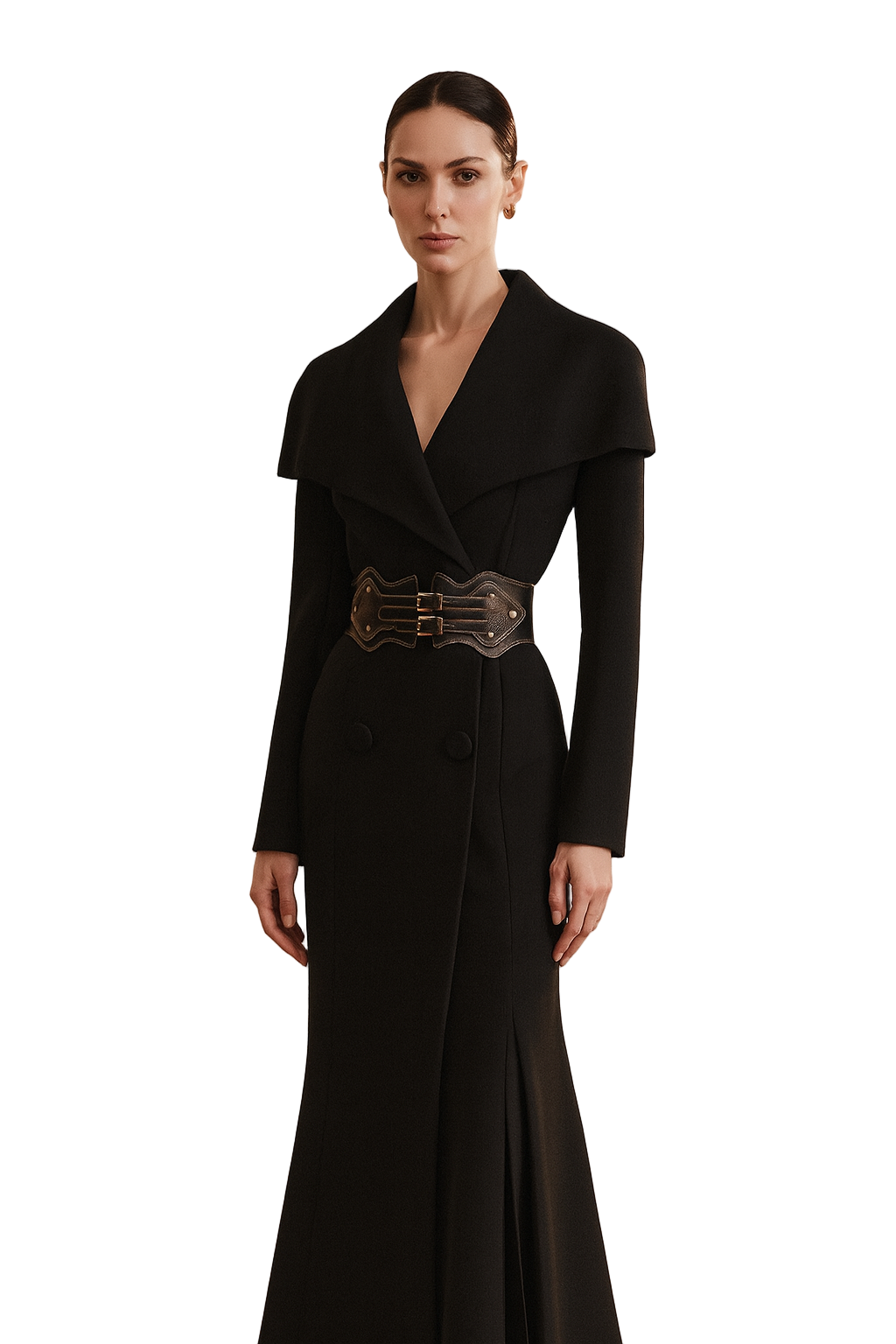 Step into the spotlight with this elegant shawl long coat! Its dramatic wide lapel and sculpted silhouette are like a red carpet invitation, minus the paparazzi. The double-buckle waist belt not only cinches your waist but also gives you that ‘I woke up like this’ confidence. Perfect for turning heads at evening events or just strutting down the city streets like you own them. Who knew looking fabulous could be this easy?